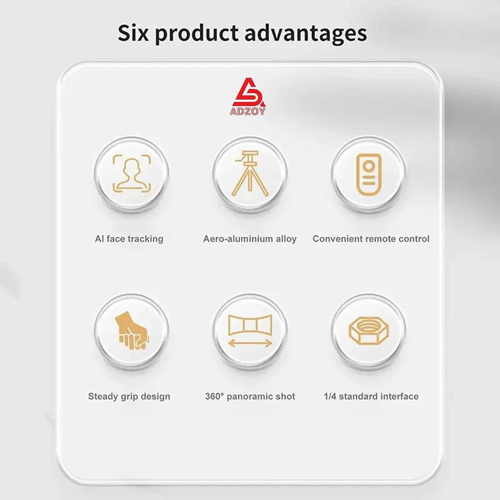 - 📸 【All-in-one Selfie Stick Tripod Stabilizer, Advanced Face Tracking Technology:】 The ADZOY ADL-Q13 Intelligent AI Tracker Selfie Stick features automatic face tracking, ensuring that you stay centered in the frame, even when moving or changing angles. This innovative technology provides a seamless and professional-looking experience for users.